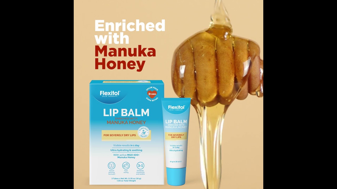 Flexitol Lip Balm enriched with Manuka Honey provides intense hydration and comfort for very dry, chapped lips.